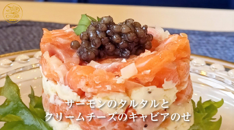 サーモンのタルタルとクリームチーズのキャビアのせ