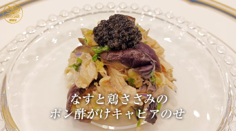なすと鶏ささみのポン酢がけキャビアのせ