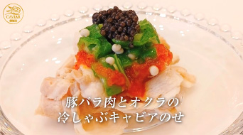 豚バラ肉とオクラの冷しゃぶキャビアのせ