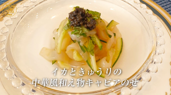 イカときゅうりの中華風和え物キャビアのせ