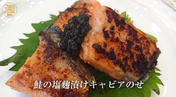 鮭の塩麴漬けキャビアのせ