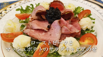 ローストビーフとマッシュポテトのサラダキャビアのせ